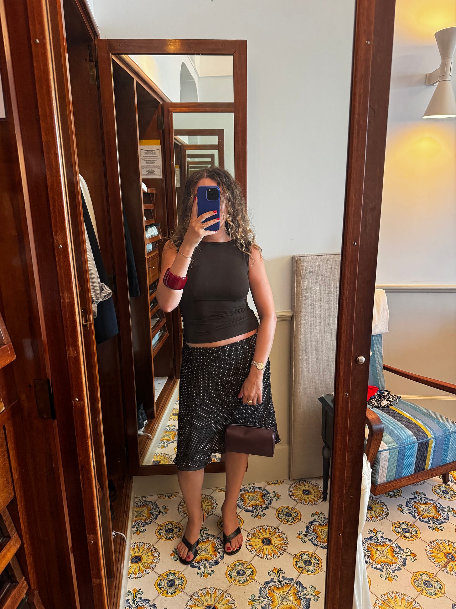 Figuring out what to wear each night with…a open air motor vehicle thrown in the mix… quickly became my most anticipated evening task. I deemed it a delicate balance of pragmatism (due to variables like…wind and helmet hair), with a sustained d-i-v-a energy. We’re channeling Bellucci, Loren, Miss Vitti, okai? Getting on a vespa to dinner in a sexy little outfit is a power move.